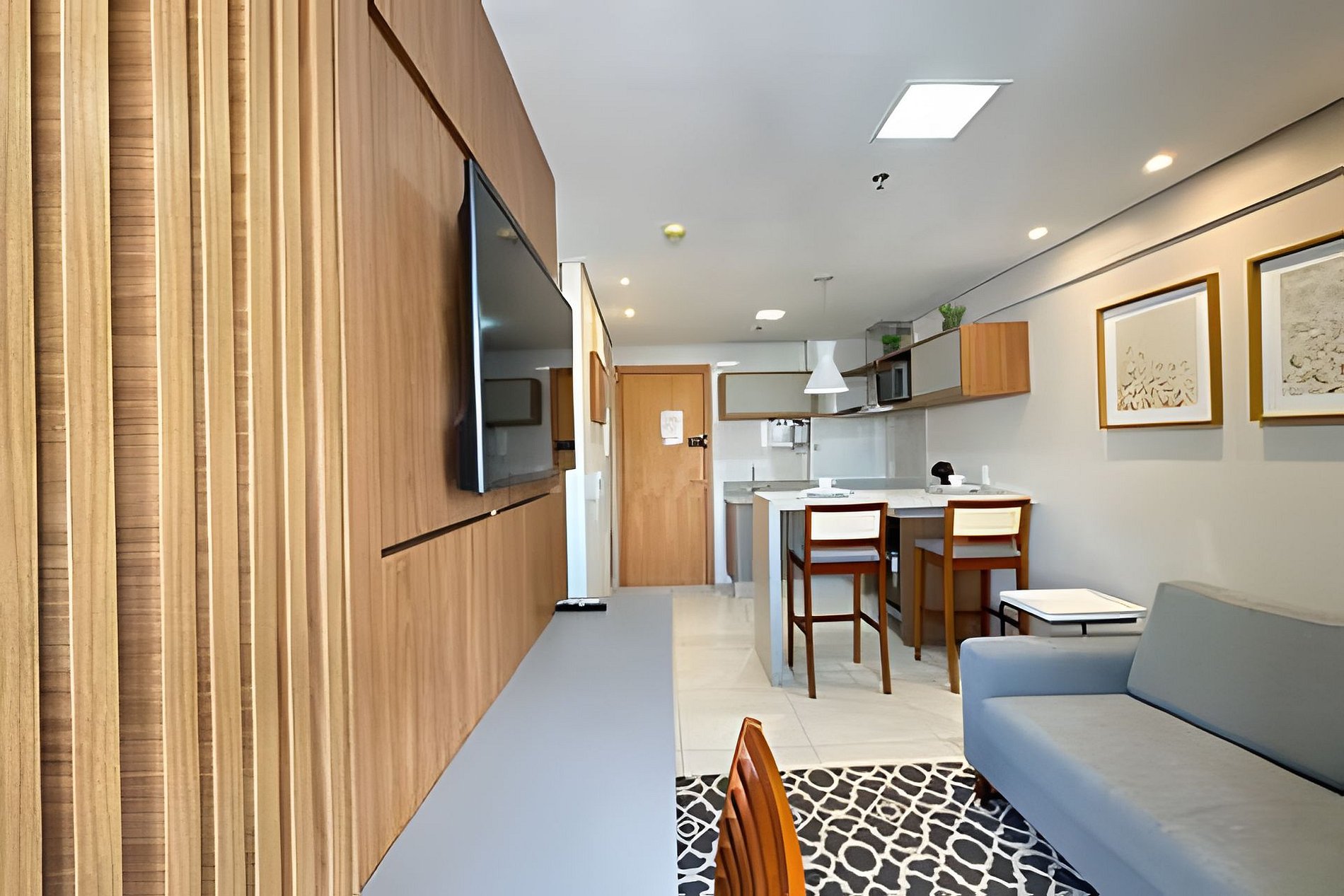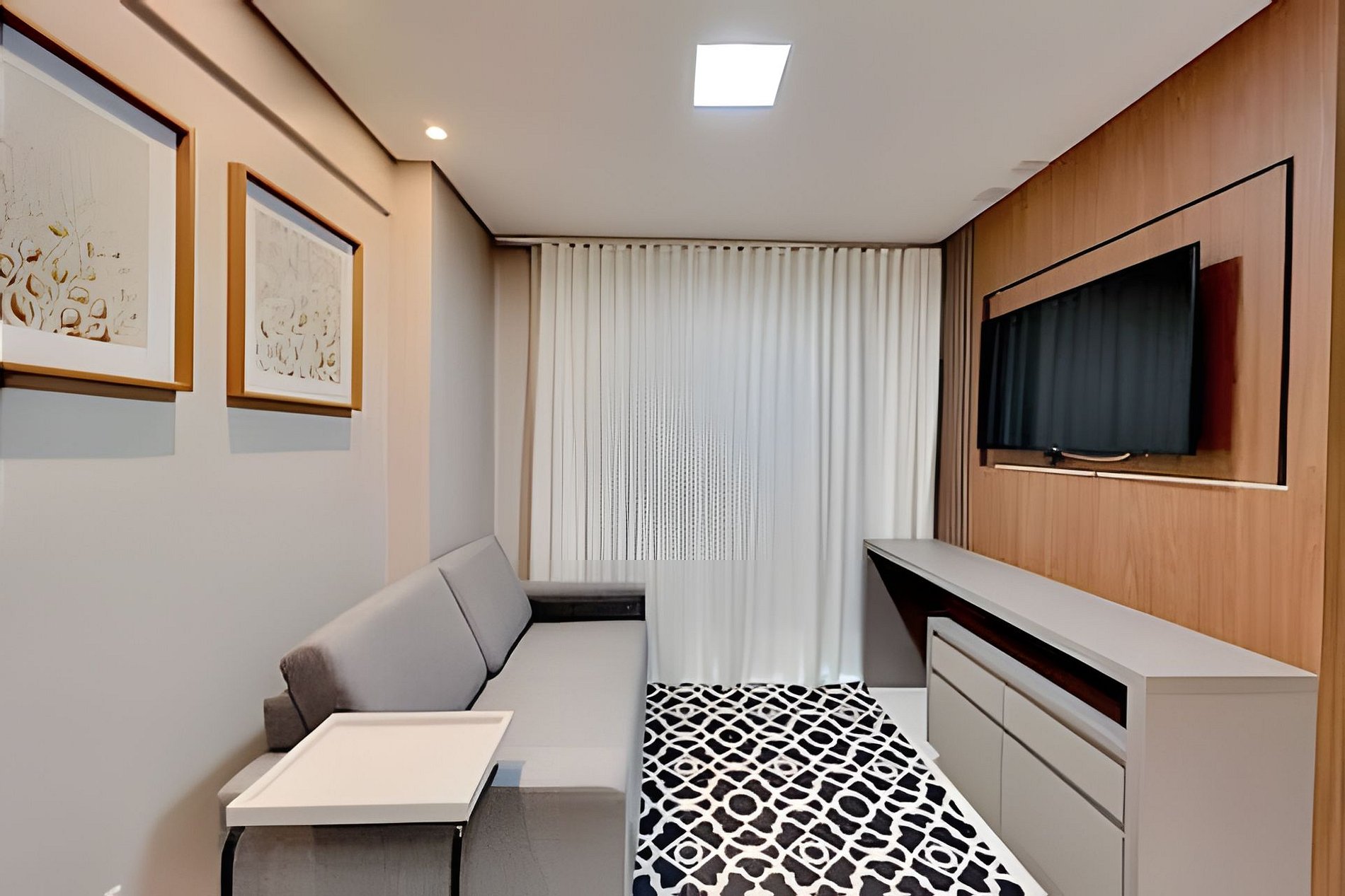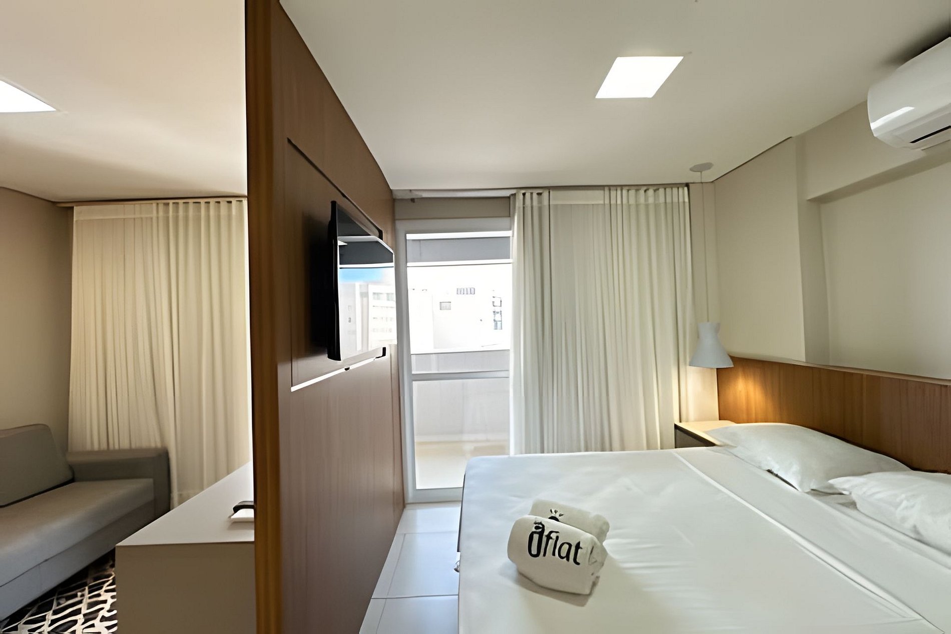 Este apartamento conta com um design moderno e acolhedor, com todos os detalhes pensados para oferecer o máximo de conforto. Ele possui: • 1 quarto com cama de casal espaçosa, roupa de cama de alta qualidade e iluminação aconchegante. • Área de estar equipada com um sofá confortável, TV de tela plana e um ambiente agradável para relaxar. • Cozinha completa com cooktop, forno de micro-ondas, frigobar e utensílios básicos, além de uma bancada para refeições rápidas. (NÃO FORNECEMOS PANO DE PRATO). • Banheiro moderno e bem iluminado, com toalhas de corpo (NÃO FORNECEMOS TOALHAS DE ROSTO). • Varanda com vista da cidade, perfeita para momentos de descanso.