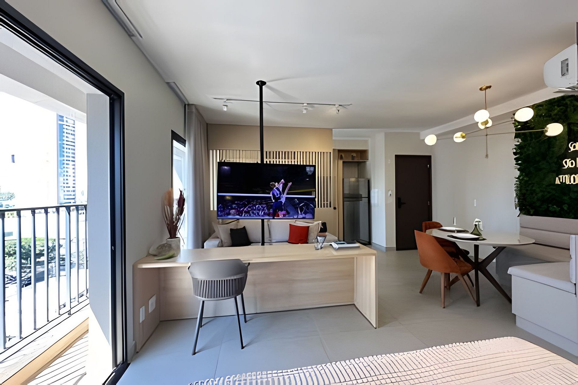 Nosso flat foi projetado com uma decoração sofisticada e minimalista para proporcionar uma experiência inesquecível: • Quarto acolhedor com cama queen size, roupa de cama de alta qualidade e decoração clean • Sala de estar espaçosa e iluminada com sofá confortável, TV e Wi-Fi de alta velocidade • Cozinha completa com utensílios modernos, micro-ondas, fogão e geladeira • Banheiro moderno com chuveiro de alta pressão e amenidades de banho • Varanda privativa com vista para a cidade, ideal para relaxar Máquina lava e seca.