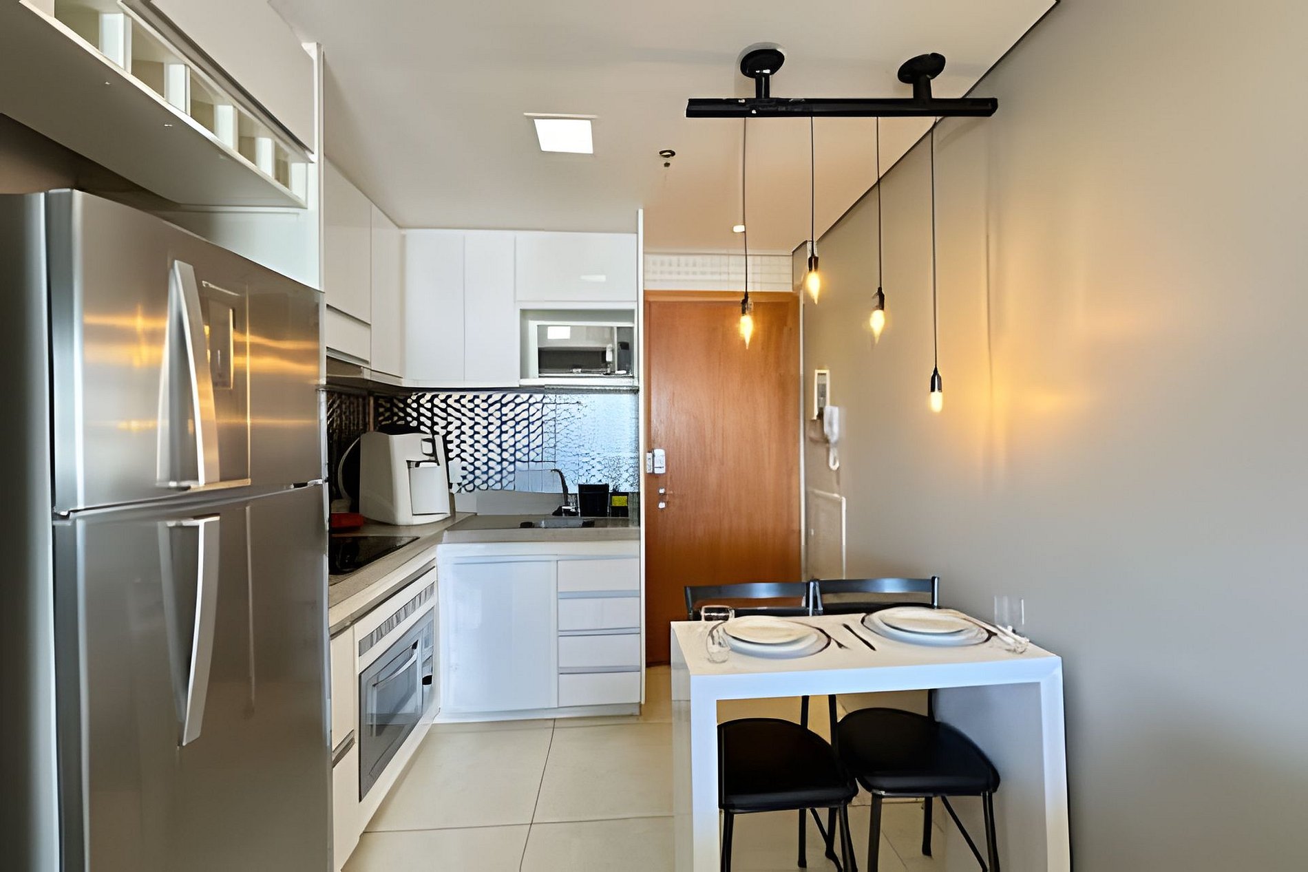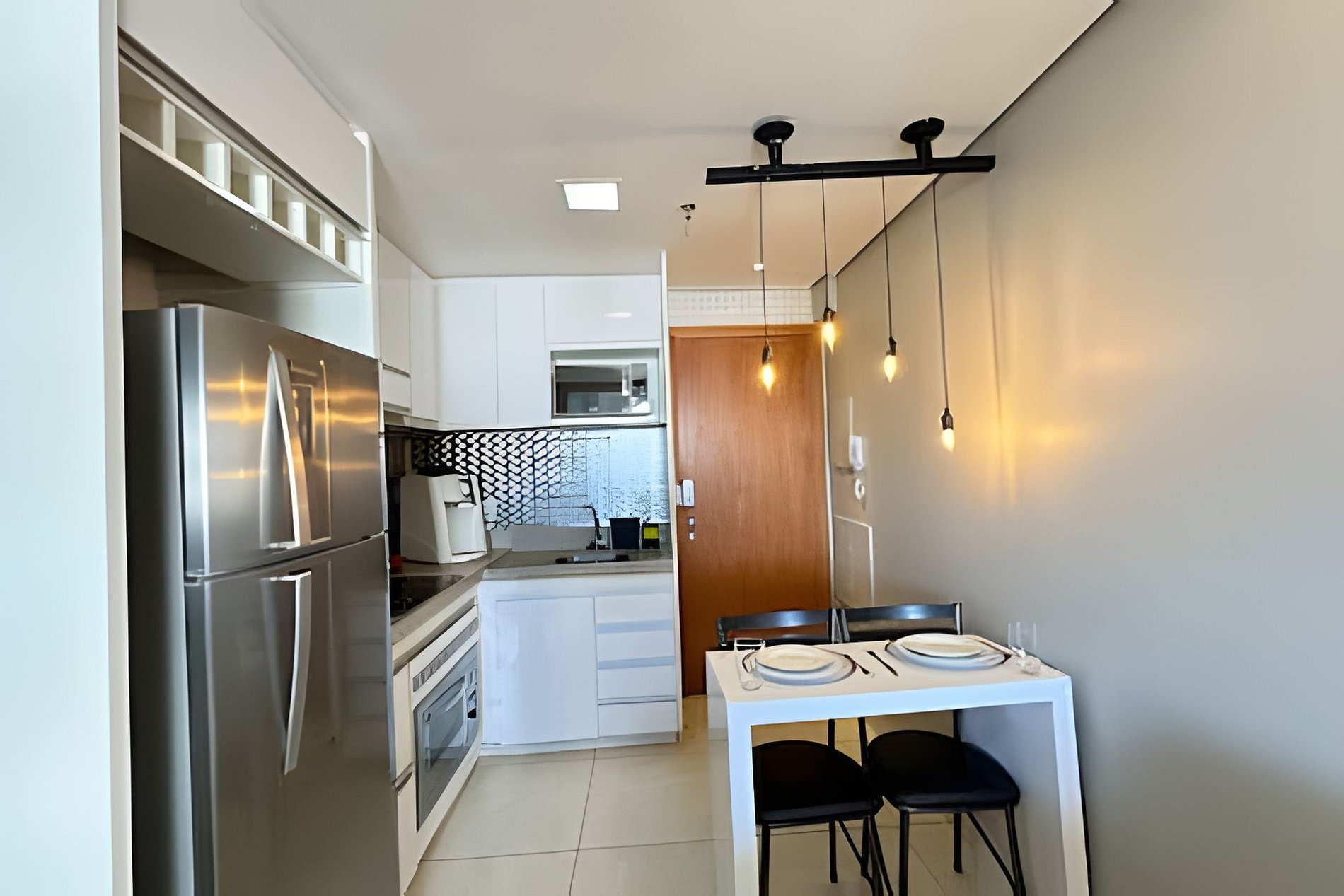 • Cozinha: Totalmente equipada com eletrodomésticos de última geração, incluindo geladeira, fogão, micro-ondas, cafeteira Nespresso e utensílios de cozinha premium.