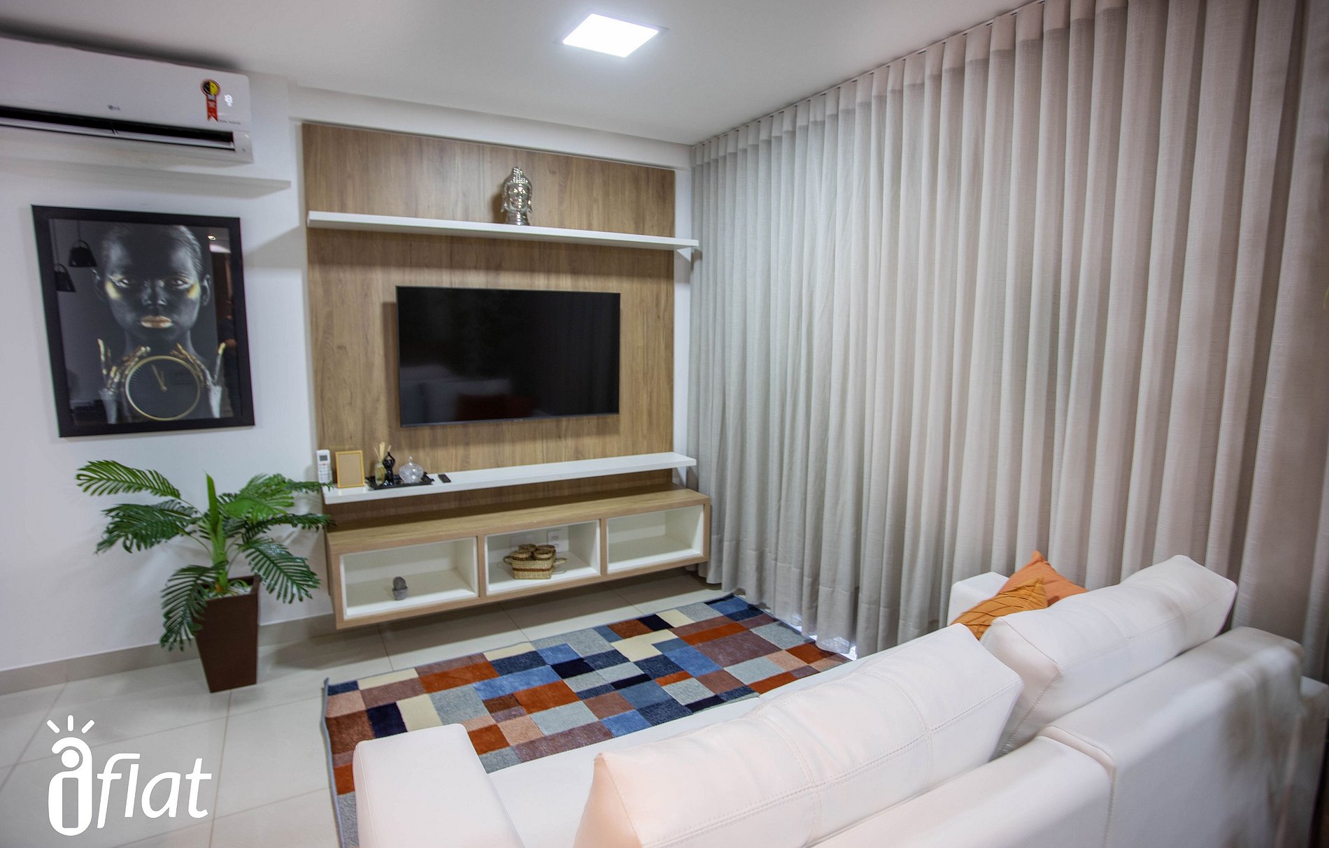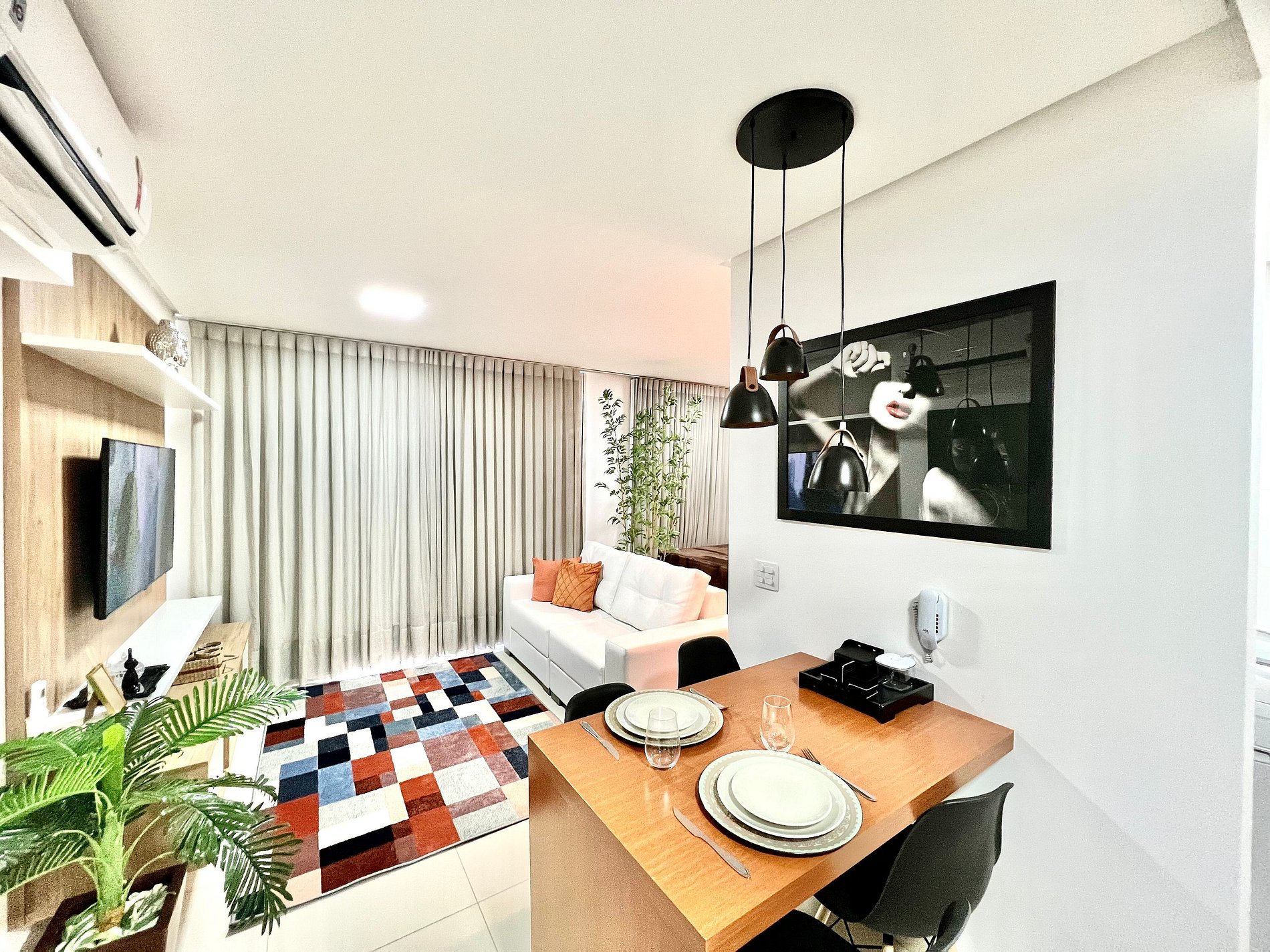 • Sala de Estar: Área de estar elegante com sofás confortáveis, TV de tela plana de alta definição e decoração moderna.