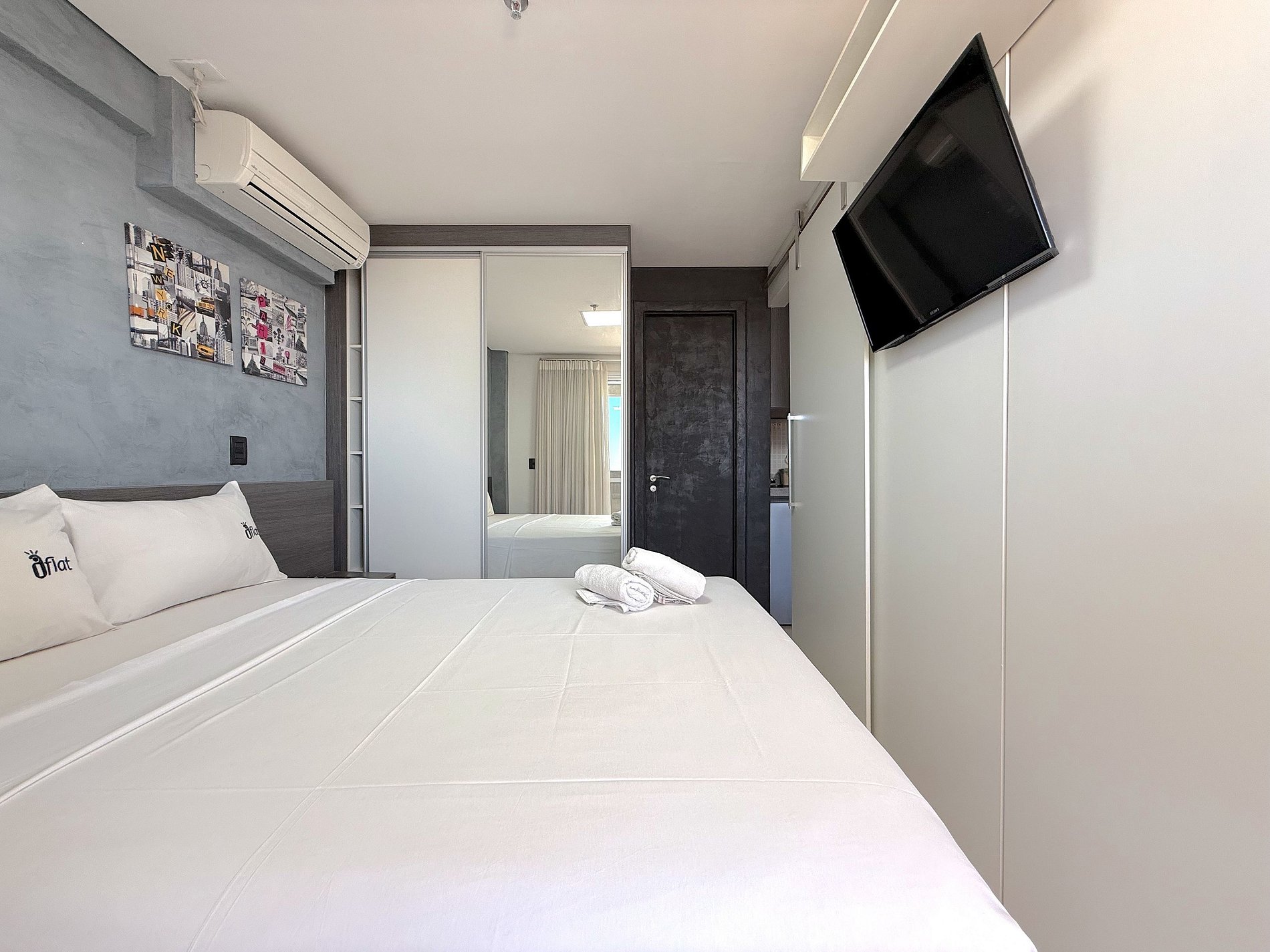 Características do Flat: • Espaço Aconchegante: Um ambiente aberto e bem iluminado com decoração contemporânea. • Cozinha Equipada: Todos os eletrodomésticos modernos, incluindo geladeira, fogão, micro-ondas e forno. • Quarto Confortável: Cama casal com lençóis de alta qualidade e amplo guarda-roupa. • Banheiro Moderno: Chuveiro espaçoso e toalhas macias. • Varanda Privada: Vista incrível da cidade, perfeita para relaxar após um dia agitado. • Wi-Fi Rápido: Ideal para trabalho remoto ou streaming de filmes. • Ar-Condicionado: Conforto garantido em todas as estações do ano. • Lavanderia no Local: Máquina de lavar e secar disponíveis no prédio por custo adicional. Estacionamento: O estacionamento é terceirizado portanto ele é pago, você pode reservar conosco ou diretamente com multipark. Academia: No prédio, sem custo. Sauna e Jacuzzi: No prédio, necessidade de agendamento Não é permitido pets Não recebemos crianças ou bebês Não é permitido fumar Não é permitido mais de 2 hóspede na unidade. Será feita uma vistoria antes do seu check-in e ao final se tiver algum item danificado ou quebrado será gerado cobrança para o reparo.