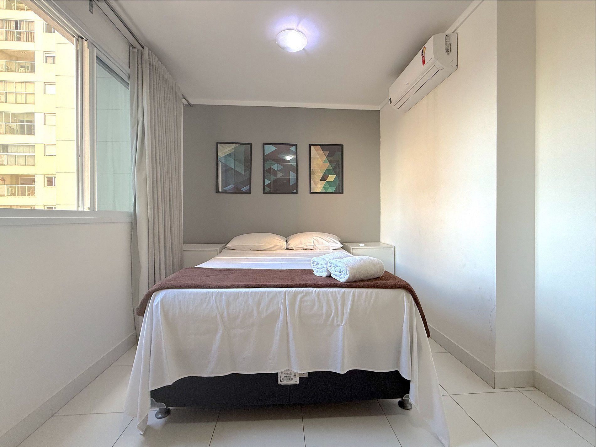 Apartamento Tipo Flat Studio, com Sacada, Cozinha compacta completa em eletrodomésticos, Fogão, Geladeira/Frigobar, Micro-ondas, cafeteira, sanduicheira, Liquidificador e Utensílios, o quarto e Sala de estar com TV, Sofá, cadeira, Cama, Guarda Roupas e cortinas. O Prédio encontra-se em uma localização privilegiada no coração do Jardim Goiás, Av. Jamel Cecílio, esq. com Av. E, de fácil Acesso a BR153, Marginal e Botafogo. Ao lado do Marista, Alto da Glória e Alphaville, próximo aos principais estabelecimentos, shopping e parque da cidade. Você pode ter fácil acesso ao Shopping Flamboyant, Parque Flamboyant, Barbearia General Brook, Supermercado Prime, Empório Sacaria, Life Box Hamburguês, Bahrem Burguer, Quintal Food Trucks, Lá Pizza, Pizzaria, Academia Formula, Fitness SPA Recovery, Supermercado Pão de Açúcar, Carrefour, Walmart, Restaurante Cateretê, Restaurante Sabhora, Posto de Gasolina e Conveniência BR 24 horas.