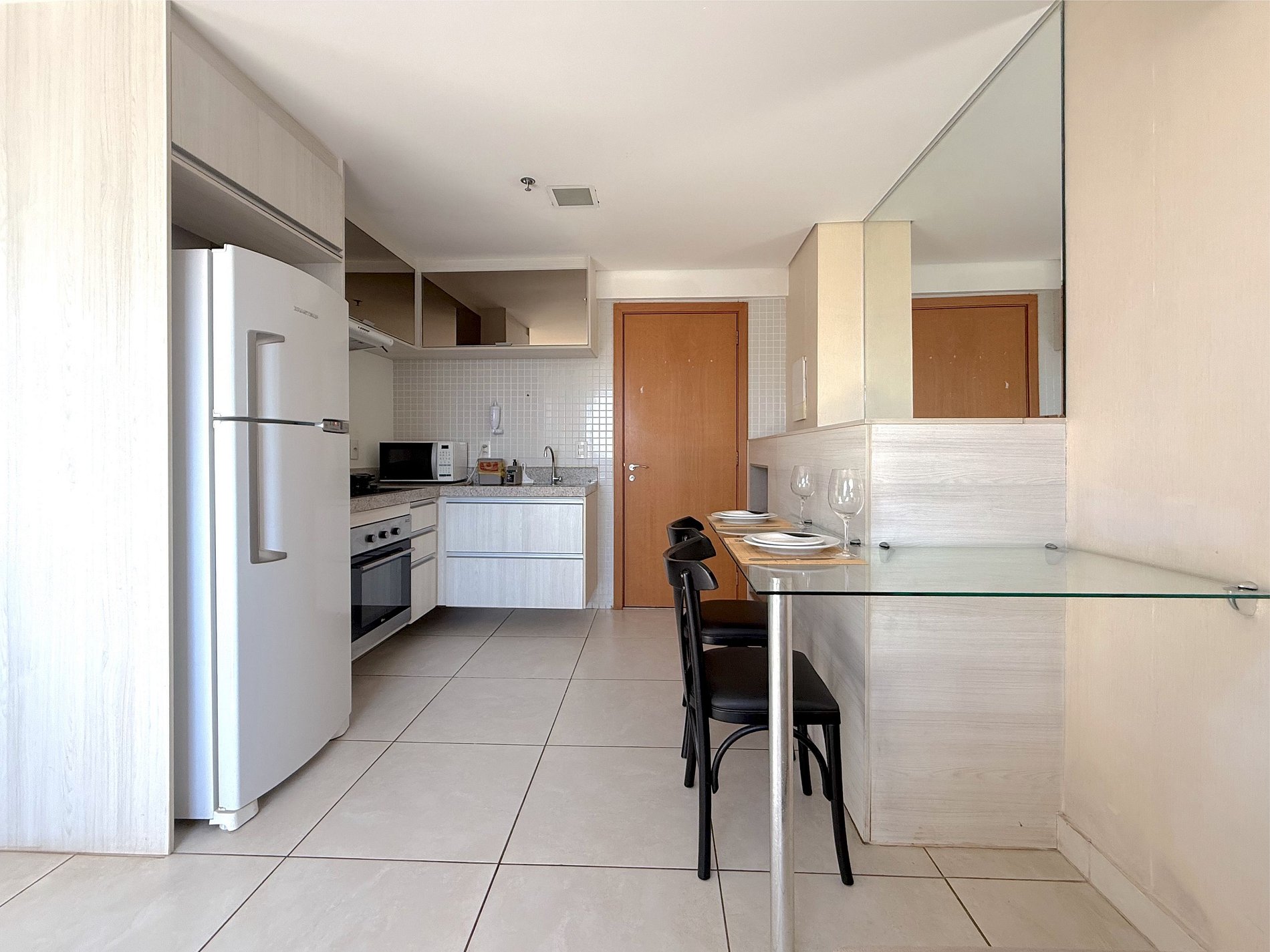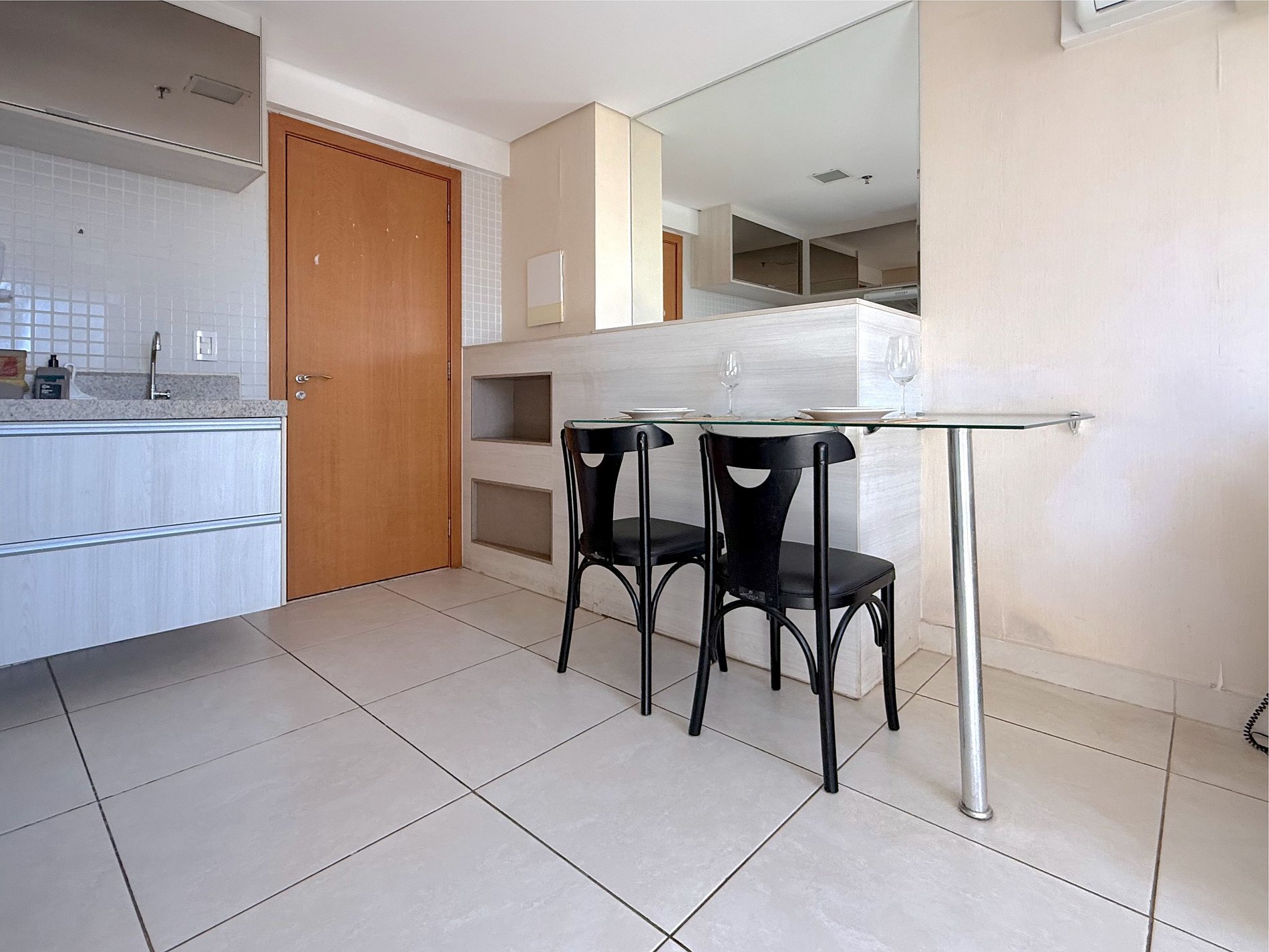 • Quarto: Cama confortável para garantir boas noites de descanso. • Ambiente: Totalmente mobiliado e decorado com estilo, pronto para você se sentir em casa. • Cozinha: Equipada com utensílios básicos e eletrodomésticos essenciais para suas refeições. Facilidades no Prédio: • Lavanderia disponível (custo adicional). • Sauna, jacuzzi e academia com acesso gratuito. • Callwork: Espaço dedicado para quem trabalha remotamente. • Estacionamento: Pago no local, garantindo maior conveniência durante sua estadia. Com excelente localização, o edifício fica próximo a shoppings, restaurantes e áreas de lazer. Aproveite a infraestrutura moderna e a segurança do condomínio
