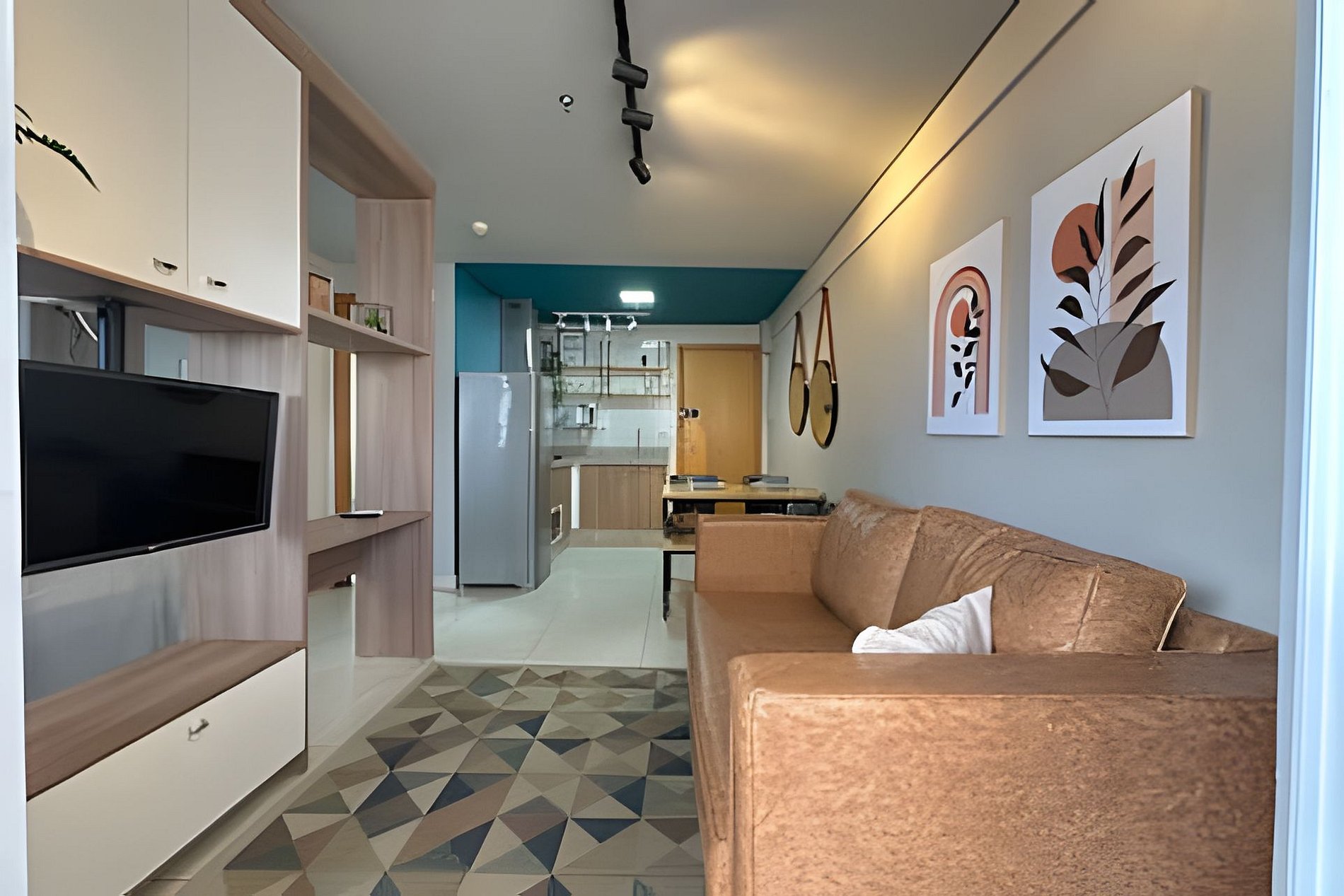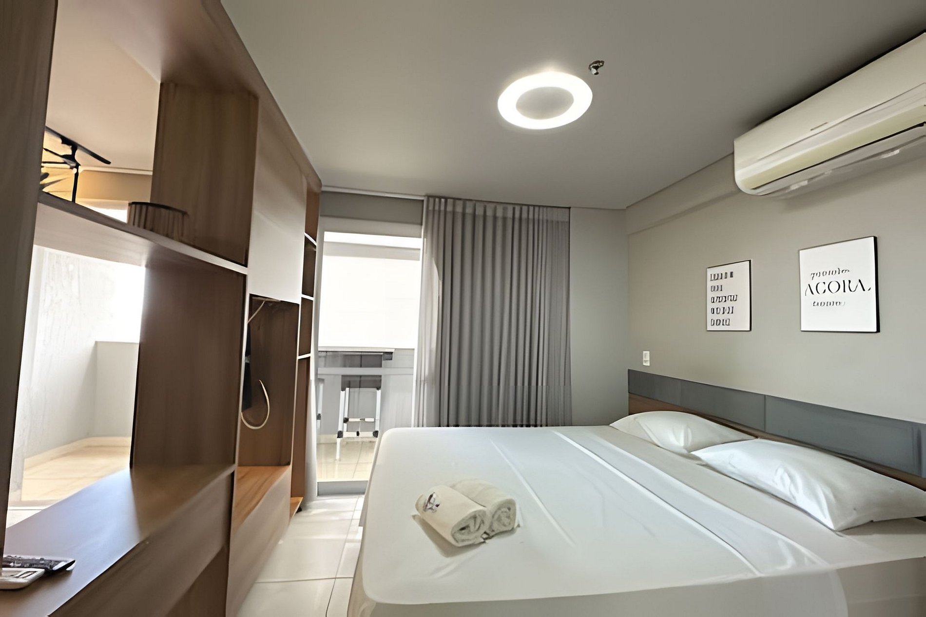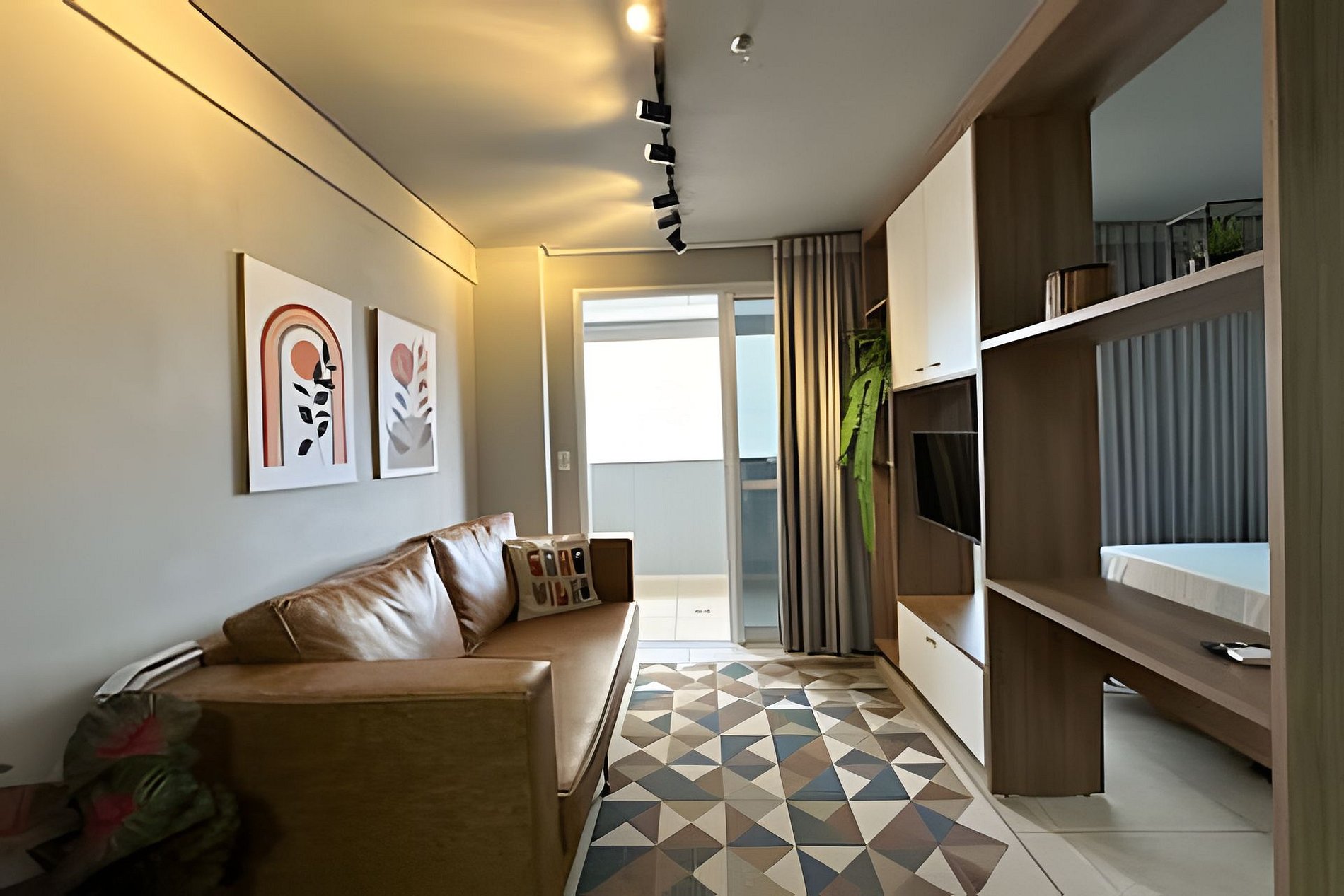 • Ambiente: Estúdio compacto e bem distribuído, ideal para quem busca praticidade e conforto em um único ambiente. A decoração moderna e clean cria uma atmosfera aconchegante e funcional.