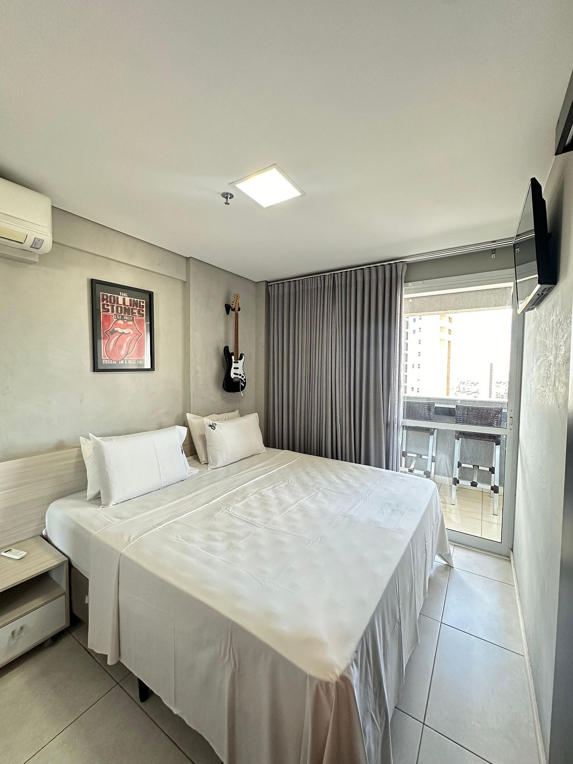 Flat 100% Mobiliado, sempre bem organizado, com 2 tv smart, filtro soft, cooktop, coifa, varanda, sofá de couro, mesa com cadeiras em madeira, camas em mola em sacada.